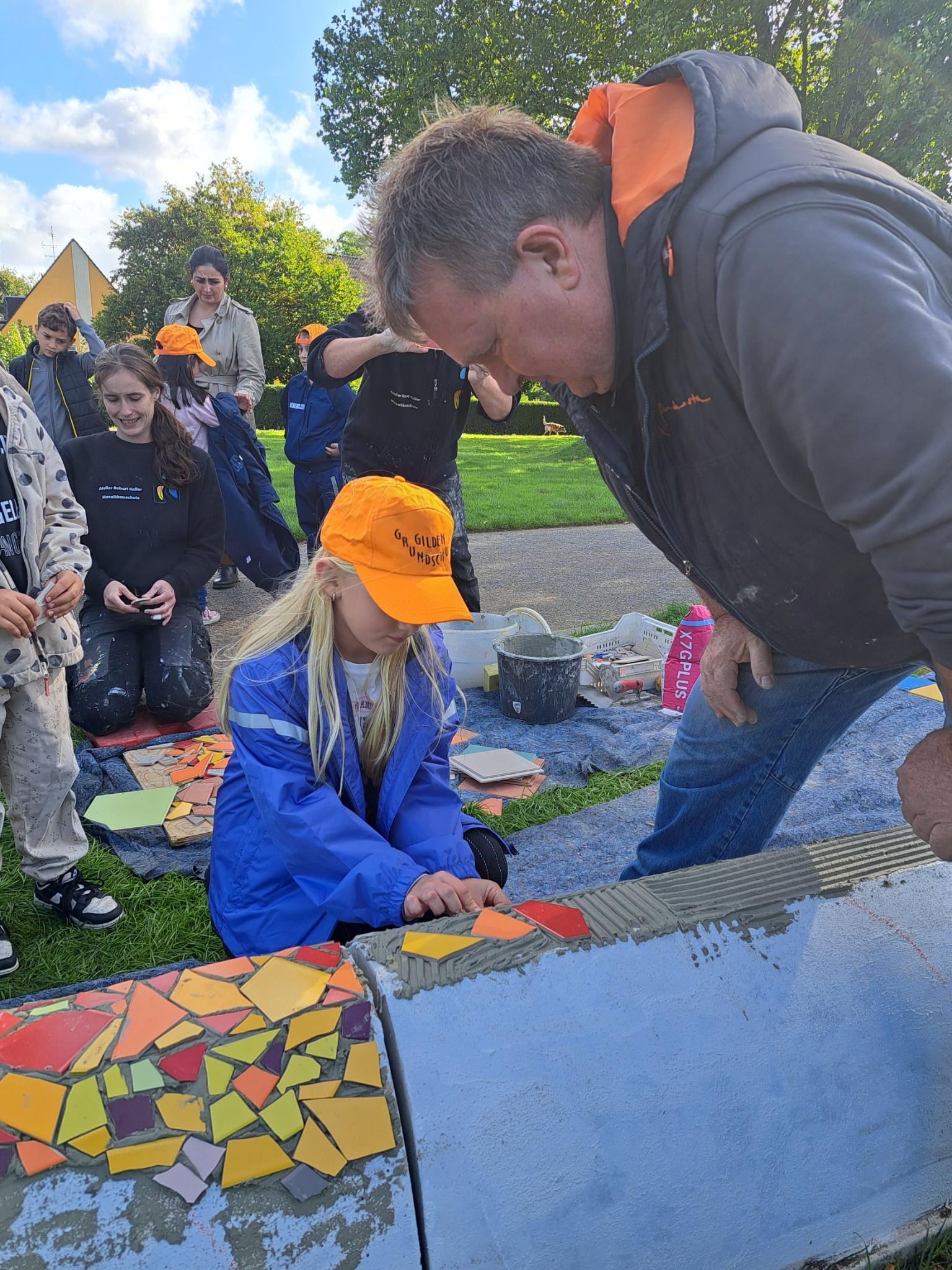 Die Klasse 2a der Gilden-Europa-Grundschule wurde vor dem Vereinsheim der Kleingartenanlage „Glückauf Hansa“ kreativ tätig. Sie unterstützte den Künstler Robert Kaller bei der Verzierung einer großen Betonschlange mit Mosaiken. Unzählige bunte Steinchen erweckten den einst grauen Koloss zum leuchtenden Leben. Die Schlange dient fortan als Sitz- oder Klettermöglichkeit hinter dem Spielplatz an der Varziner Straße. Begleitet wurde die Aktion durch Mitarbeiter der Stadt Dortmund aus dem Amt für Stadterneuerung.